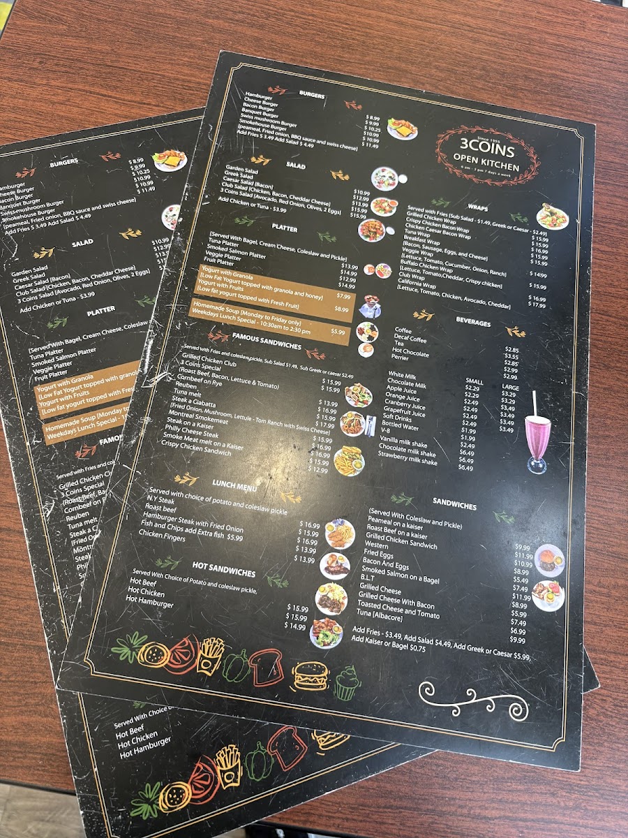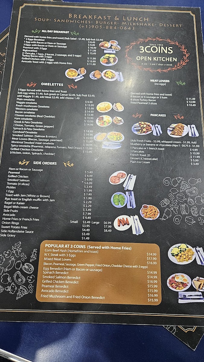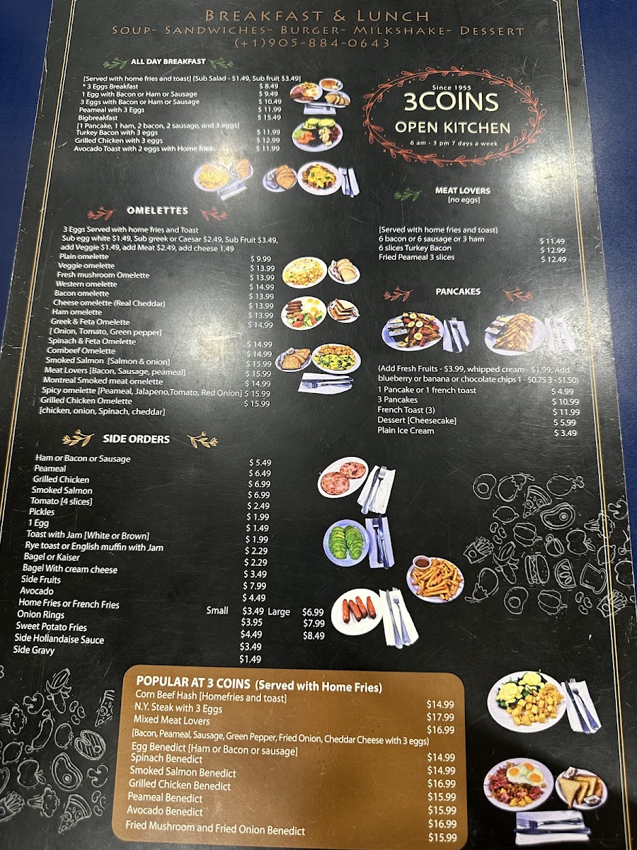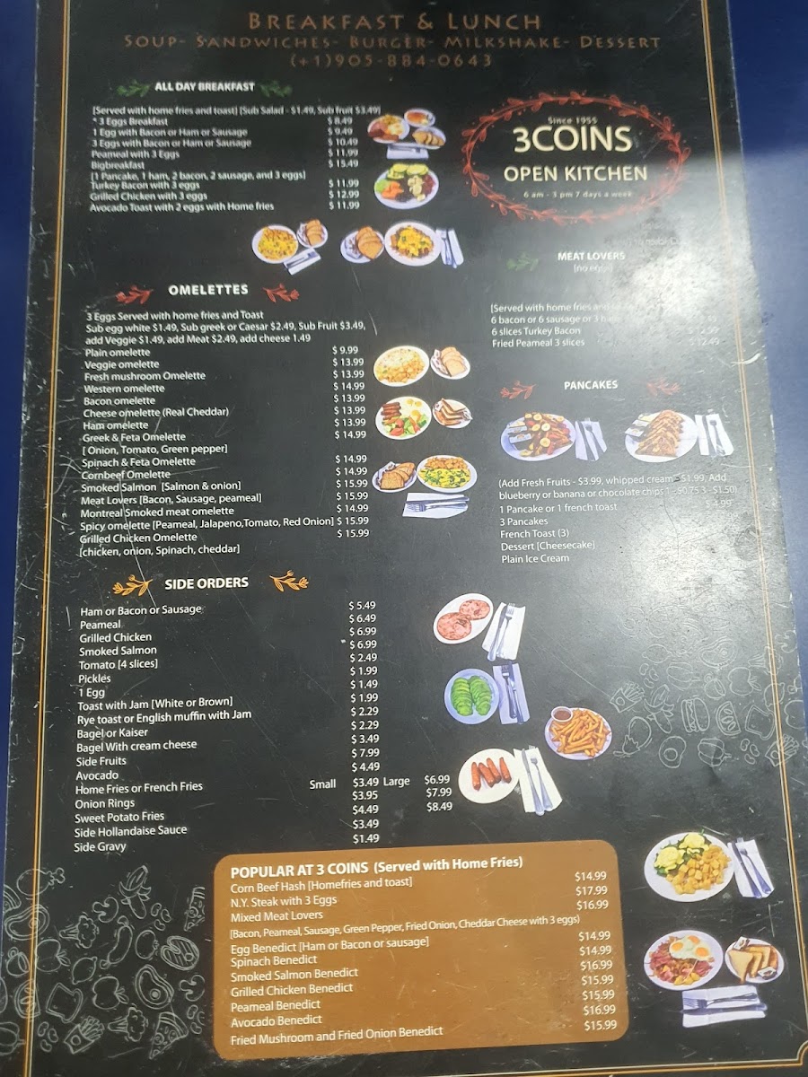 Three Coins Open Kitchen& Breakfast And Lunch Menu