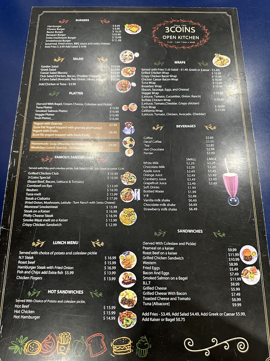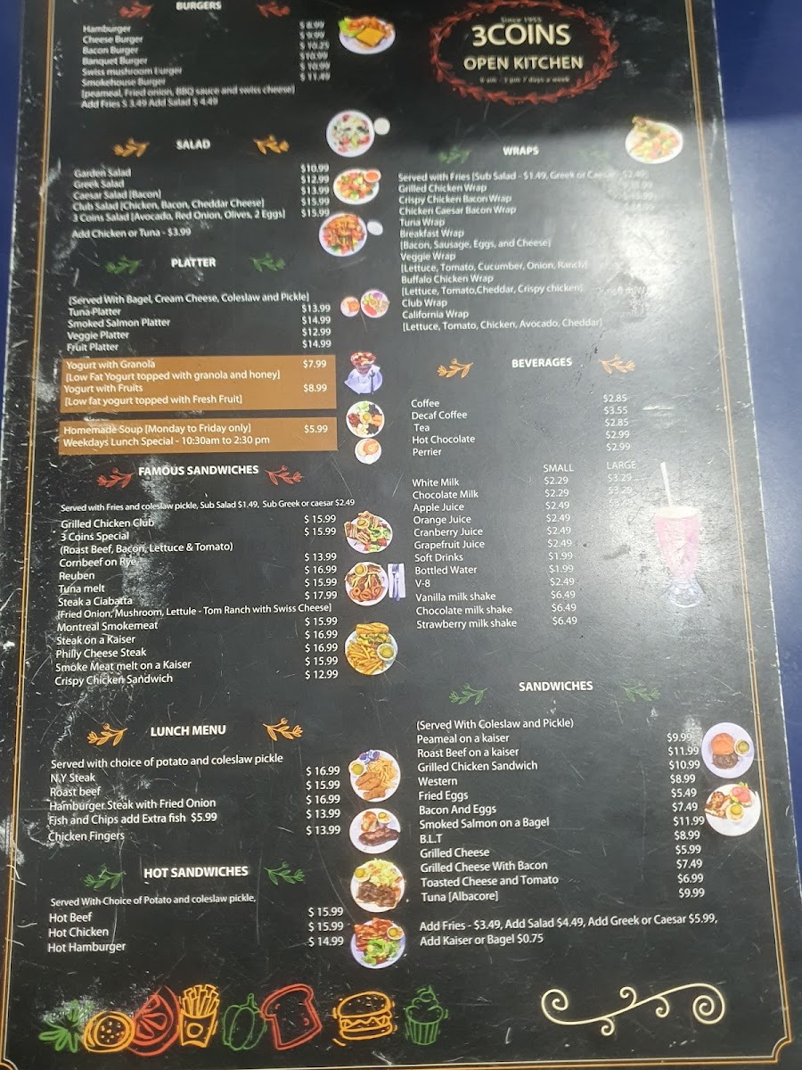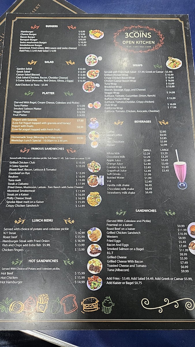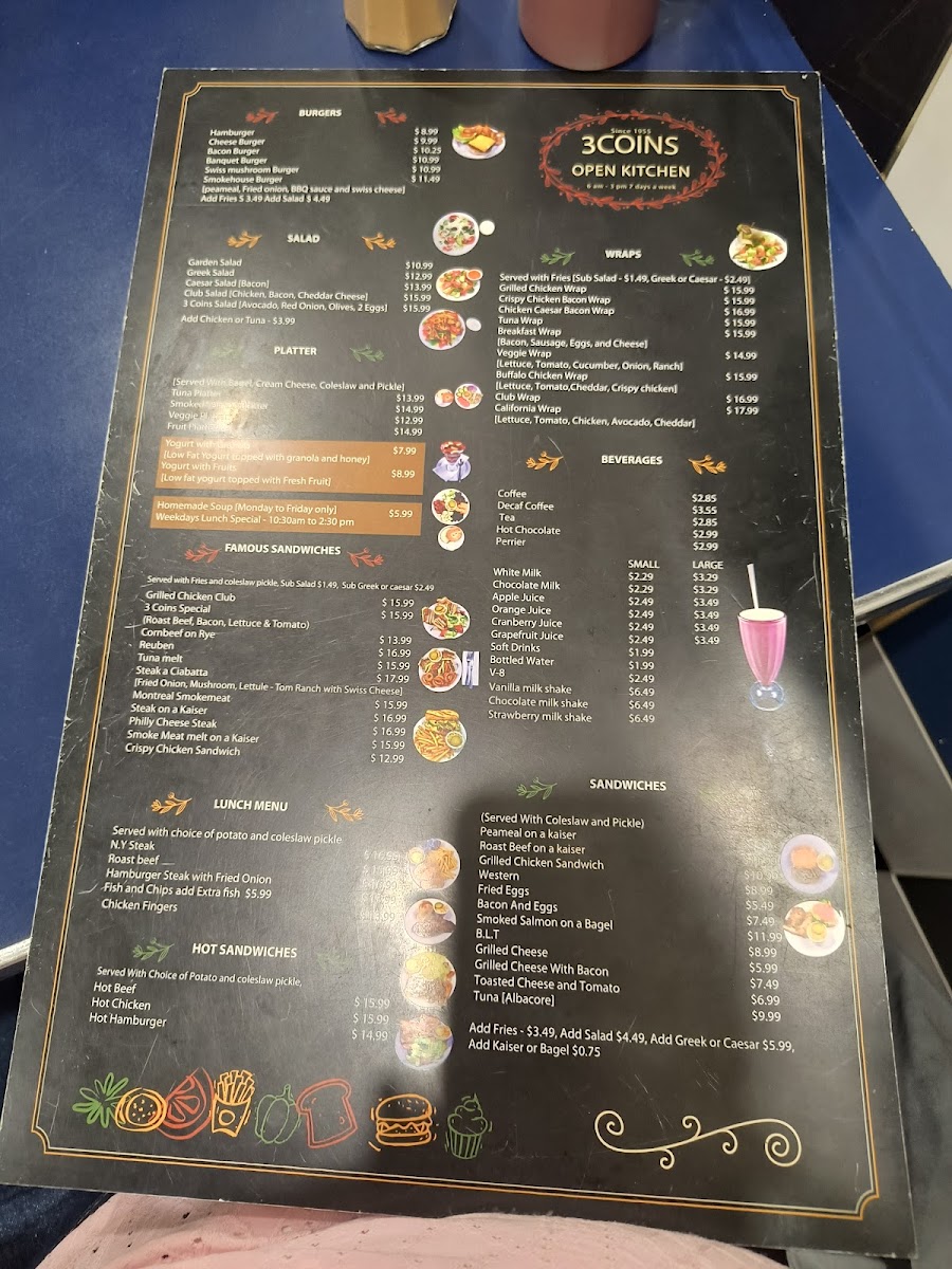 Three Coins Open Kitchen& Breakfast And Lunch Menu